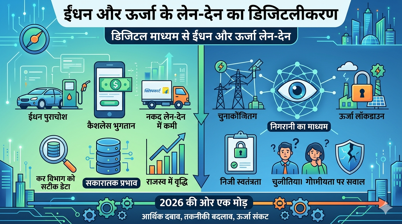 ईंधन और ऊर्जा से जुड़े सभी लेन-देन को डिजिटल माध्यम से नकद लेन-देन कम होगा कर विभाग को वास्तविक खपत का सटीक डेटा मिलेगा हालांकि, यही पहलू लोगों में चिंता भी पैदा करता है कि कहीं यह अत्यधिक निगरानी का माध्यम न बन जाए। यह भ्रष्टाचार पर अंकुश लगा सकता है, वहीं दूसरी ओर यह व्यक्तिगत स्वतंत्रता और गोपनीयता पर नए सवाल भी खड़े करता है साल 2026 को दुनिया…